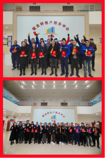李香芬總經(jīng)理為物業(yè)板塊優(yōu)秀員工頒授榮譽(yù)證書與獎(jiǎng)杯并留影
